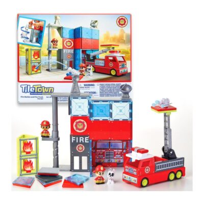 Tile Town Fire Station Magnetic Tiles Set (66 Piece)