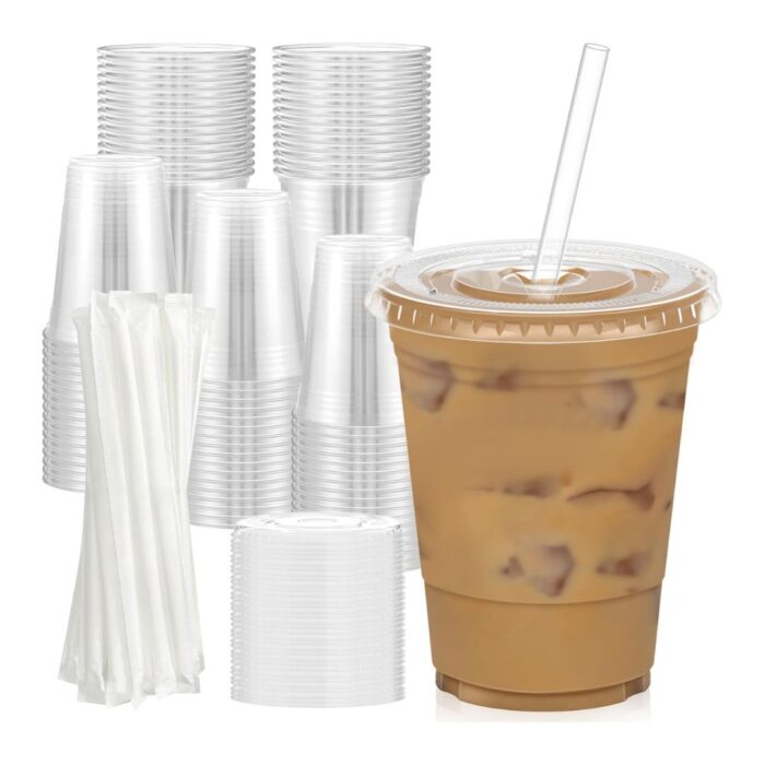Clear Plastic Cups, Lids & Straws (100 Pack)
